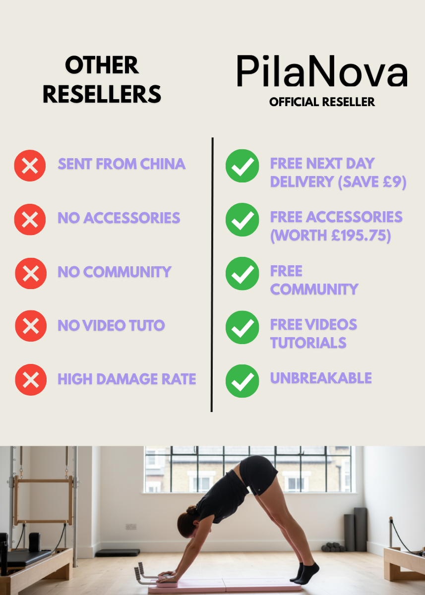 ✅ No, everything you need is included in your PilaNova Reformer Set! There’s no need for additional equipment—all you need is a comfortable space at home.